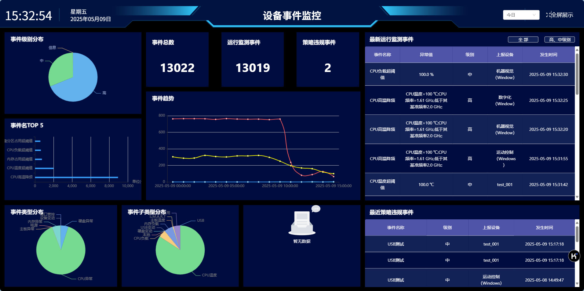 系統設定IPC異常監測策略,下發給客戶端進行實時監測,當終端agent發現對應事件后,可將對應事件上報給中心平臺進行查看。