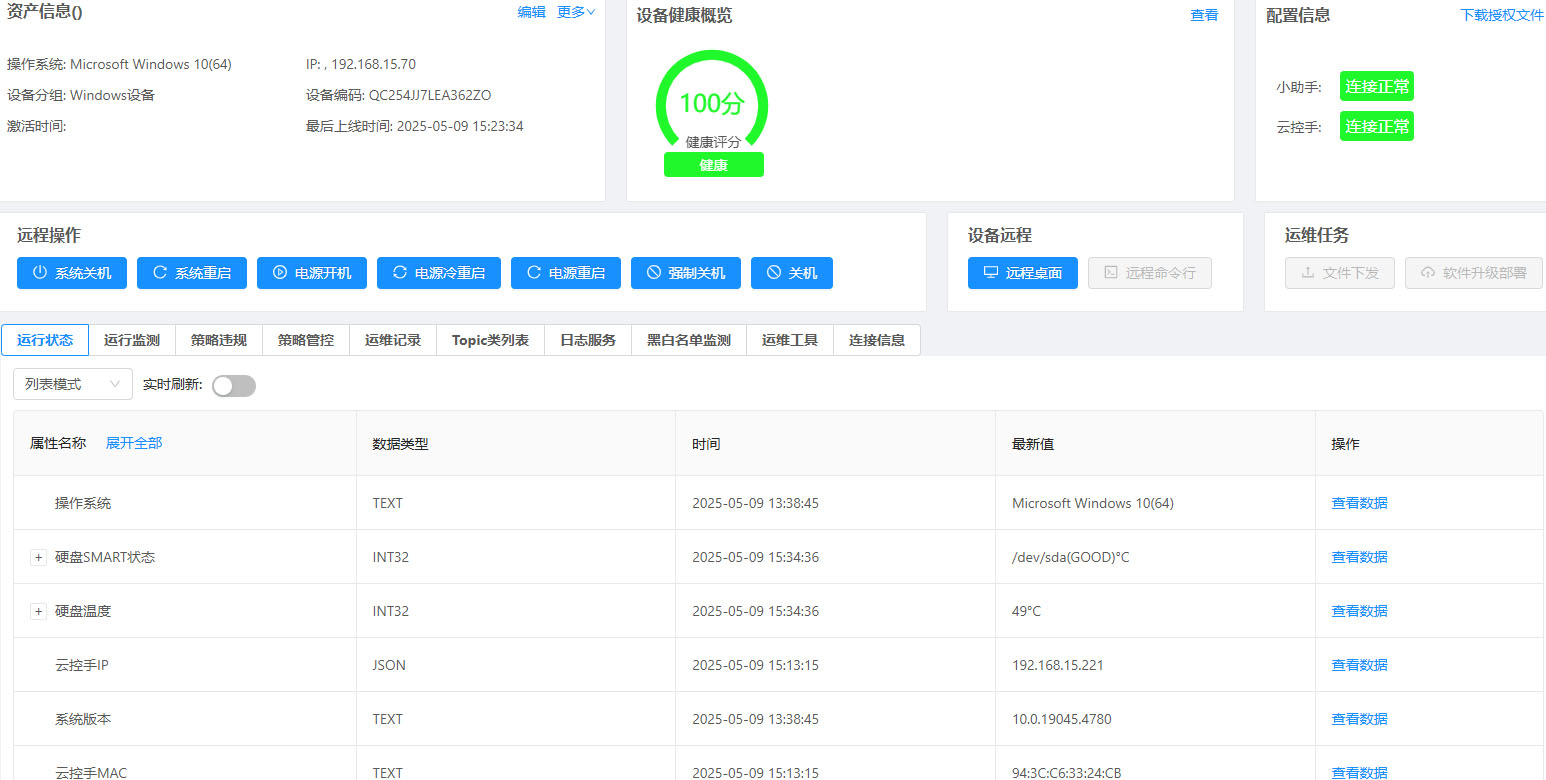 • 通過小助手對IPC設備的運行狀態進行采集,上報到大管家,大管家登陸后,在設備管理中選定設備,查看其運行狀態。