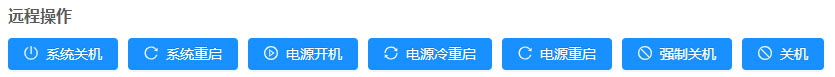 配合云控手、小助手可實現以下遠程操作:系統關機、系統重啟、電源開關、電源冷重啟、電源重啟、強制關機、關機等操作。