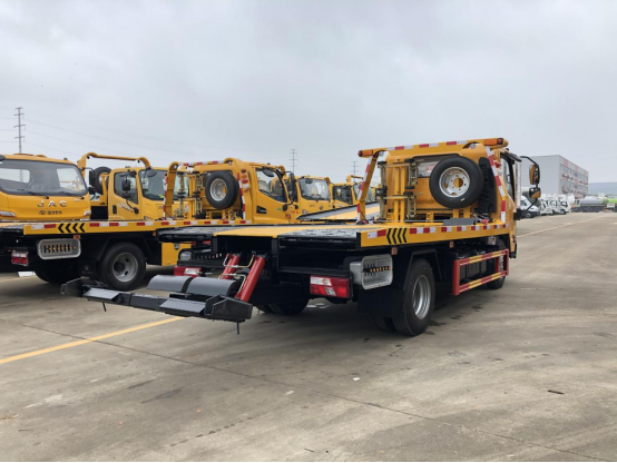 一體板:3噸上裝,4噸卷揚(yáng),21米鋼絲繩,3噸后拖臂,底板為花紋一體板(可選沖壓板),板長5.2米,雙側(cè)聯(lián)動操作,配四根捆綁帶,**小車一套,L型抱胎架一對,工具箱一個,LED工作照明燈一對,其余標(biāo)配。