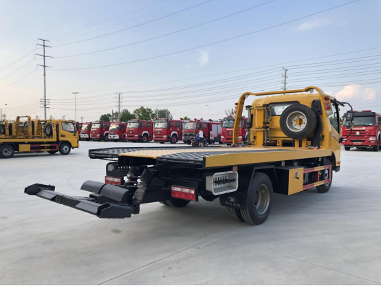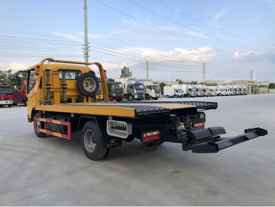 一體板:3噸上裝,4噸卷揚,21米鋼絲繩,3噸后拖臂,底板為花紋一體板(可選沖壓板),板長5.2米,雙側聯動操作,配四根捆綁帶,**小車一套,L型抱胎架一對,工具箱一個,LED工作照明燈一對,其余標配。